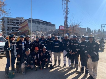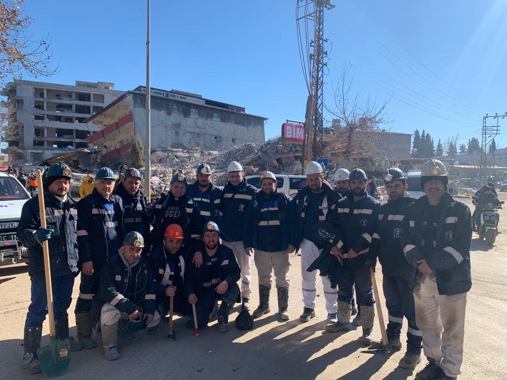 Türkiye'nin çeşitli bölgelerinde bulunan şubelerimizle koordineli bir şekilde, madenci üyelerimiz de arama kurtarma çalışmalarına katılmak üzere deprem bölgesine ulaştı ve yüzlerce insanı göçük altından çıkardı. Arama Kurtarma çalışmalarına devam eden üyelerimize, çalıştıkları şirketlerin bütün yetkililerine ve orada bulunan bütün yardımseverlere teşekkür ediyoruz.
