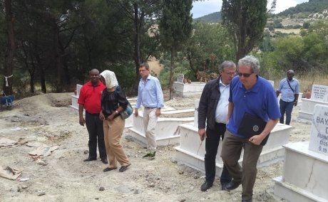 Ertesi gün Soma'ya hareket eden heyet burada sendikamız Ege Bölgesi 1 No'lu Şube Müteşebbis Heyeti Başkanı Ali Gökmen'i, kaymakamlığı, şehitliği ve şehit madenci ailelerini ziyaret etti. IndustriAll Küresel Sanayi İşçileri Sendikası Genel Sekreter Yardımcısı Kemal Özkan Soma'da yaptığı konuşmada şunları kaydetti: 'Tüm dünya özellikle buradaki maden işçilerinin ailelerinin acılarını yürekten paylaşıyor. Buraya gelmeden önce tabii ki çok duygusal anlar yaşadık. Madenci şehitliğini ziyaret ettik, hüzünlendik, ağladık onların acılarını tekrar içimizde hissettik ruhları şad olsun, nur içinde yatsınlar anılarını her zaman içimizde yaşatacağız, onları hiç unutamayacağız. Onlar büyük bir mücadele ailelerinin, kendilerinin gelecekleri için mücadele ettiler ama gerçekten çok büyük bir facianın katliamın sonunda hayatlarını kaybettiler'. Avustralya Maden ve Enerji Sendikası Genel Sekreteri ve IndustriAll Küresel Sanayi İşçileri Sendikası Madencilik Başkanı Andrew Vickers ise, 'Bizim ziyaretlerimizin en önemli amaçlarından biri burada kaybettiğimiz madenci kardeşlerimize taziyelerimizi, başsağlıklarımızı dilemek, onların ruhları önünde eğilmek. Bildiğiniz gibi madenciler arasındaki dayanışma bütün dünyada son derece yaygındır, bilinir. Biz bütün dünyadaki madenciler olarak buradaki kazayı duyduğumuzda hepimiz büyük bir şoka girdik, büyük üzüntü hissettik' şeklinde konuştu.