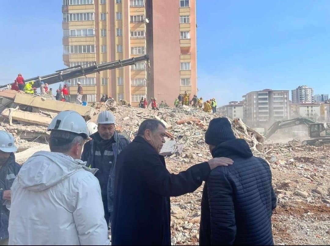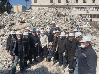 Sendikamız Genel Başkanı Nurettin Akçul, depremin ilk gününden itibaren deprem bölgesinde arama-kurtarma çalışması yürüten üyemiz Maden işçilerinin yanında çalışmaları yakından takip ediyor. Yıllarca maden emekçisi olarak çalışan Genel Başkanımız Akçul'un tecrübelerinden de yararlanan Alınteri Aslanları üyemiz Madenciler, vatandaşlarımıza umut olmaya devam ediyor. Herkesin gönlünde bir kez daha taht kuran ve kamuoyunda arama kurtarma teknikleriyle adından gururla bahsedilen üyemiz maden emekçileri, deprem bölgesinde yeni bir cana ulaşmak için hummalı bir şekilde çalışıyor ve adeta zamanla yarışıyor. Genel Başkanımız Nurettin Akçul burada yaptığı konuşmada deprem bölgesindeki şartların çok zor olduğuna değindi ve : 'Çok büyük bir afet yaşıyoruz. Böyle bir felaketi Allah bir daha yaşatmasın. Acımız çok büyük ama enkaz altından çıkan her bir can bize umut oluyor. Bütün maden emekçilerine ,bütün kurtarma ekiplerine ve yardımcı olan herkese teşekkür ediyoruz. Tüm imkanlarımızla buradayız ve olmaya devam edeceğiz' dedi.