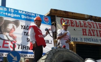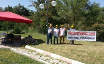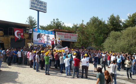 Özelleştirmeye karşı aylardır mücadele eden sendikamız üyesi maden işçileri ile Tes-İş'e bağlı enerji işçileri, ÖYK'nin Yatağan Termik Santralı satışını onaylamasının ardından alıcıları işyerlerine sokmama kararı aldı. İşçiler bu karar doğrultusunda ilk eylemini 20 Ağustos Çarşamba günü GELİ önünde dört iş makinesi ile barikat kurarak yaptı.