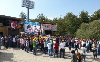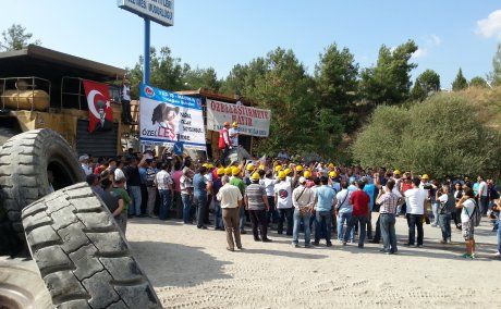 MUĞLA'DA Yatağan, Yeniköy ve Kemerköy Termik Santralleri ile kömür ocaklarının özelleştirilmek istenmesine karşı aylardır mücadele eden üyemiz işçilerle Tes-İş'e bağlı işçiler, Yatağan Termik Santralı satışının onaylanmasından sonra alıcıları işyerlerine sokmama kararı aldı. Tayyip Erdoğan başkanlığında toplanan Özelleştirme Yüksek Kurulu'nun (ÖYK) Yatağan Termik Santralı satışını onaylamasının ardından bir araya gelen sendikamız ve TES-İş Yatağan Şube Başkanları, tüm işyeri komiteleriyle ardı ardına toplantılar yaparak özelleştirmeye karşı mücadelede yeni yol haritasını belirledi. İki gün boyunca santrallar ile kömür ocaklarında işçilerle yapılan toplantılar sonucunda özelleştirmeye karşı savaşmaya devam kararı alındı ve bu doğrultuda ilk eyleme dün(20 Ağustos 2014) Yatağan'daki kömür işletmeleri girişine iş makineleriyle barikat kurularak başlandı. Ayrıca santral ve kömür ocakları önündeki gözcü sayılarının da arttırılacağı söylendi.