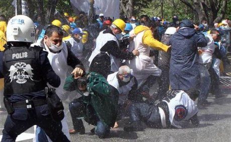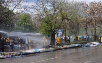 Özelleştirme İdaresi Başkanlığı karşısındaki Kurtuluş Parkı'nda eylem yapan maden ve enerji işçilerine bugün (18 Nisan) polis çok sert müdahalede bulundu.