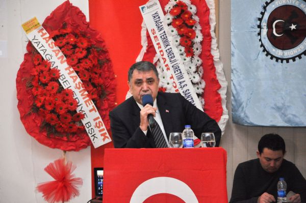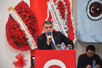 Biliyorsunuz bir de KİT’ler meselesi var. KİT’lerde çalışan 50 bin taşeron işçi arkadaşımız kadro beklemektedir. Bir milyon civarında taşeronu ağır iş yapmayanları kadroya alıyorsunuz, ama en ağır koşulda yani 20’de bir orana tekabül eden 50 bini bu haktan mahrum edeceksiniz. Buna ne gönlümüz razı, ne de vicdanımız. Ben Türk-İş başkanının bu konuda mücadele vermesine devam edeceğine, bu işin peşini bırakmayacağına inanıyorum. Bizlerin de bu haklı mücadelede sonuna kadar onun yanında olacağımızı bildirmek isterim.