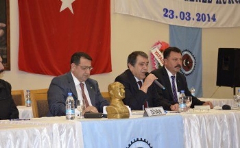 Sonrasında genel kurula katılan konukların konuşmalarına geçildi. Divan ilk sözü, özelleştirmeye karşı ortak mücadele yürüten enerji işçilerinin bağlı olduğu Tes-İş Sendikası Yatağan Şube Başkanı Fatih Erçelik'e verdi. Erçelik konuşmasında enerji ve maden işçilerinin özelleştirmeye karşı omuz omuza kararlılıkla yürüttükleri mücadelenin özelleştirme süreci durduruluncaya kadar süreceğini belirtti.