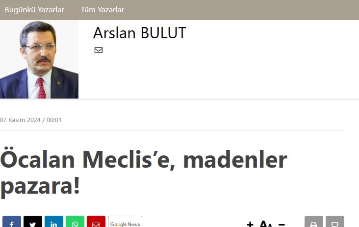 Yeniçağ Gazetesi Köşe Yazarı Arslan Bulut Çayırhan Maden Sahalarının Özelleştirilmesiyle İlgili Önemli Bir Yazı Kaleme Aldı
